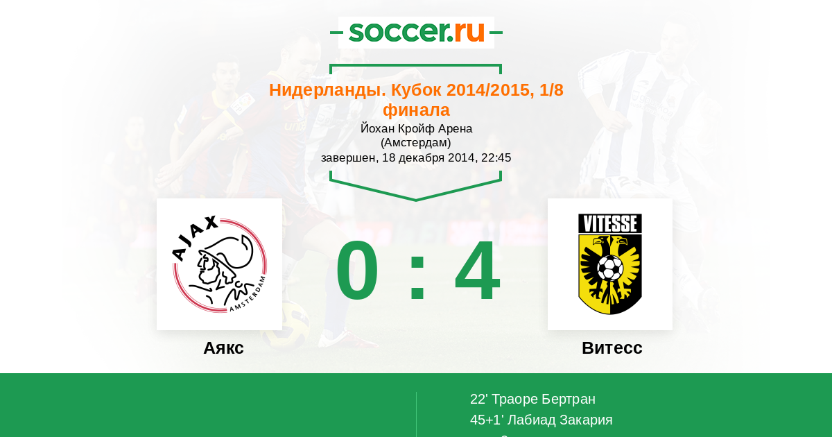 Протокол матча Аякс против Витесс
