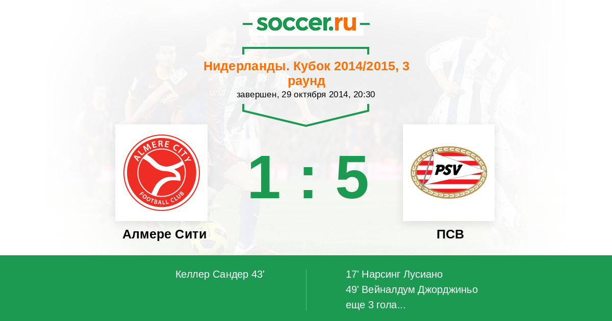 Протокол матча Алмере Сити против ПСВ