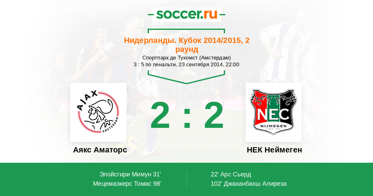 Протокол матча Аякс Аматорс против НЕК Неймеген