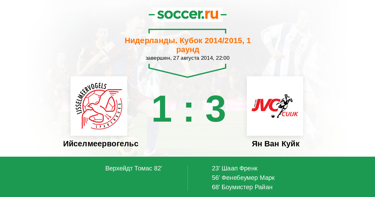 Протокол матча Ийселмеервогельс против Ян Ван Куйк