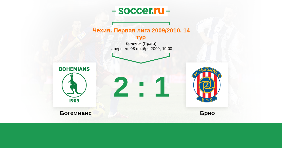 История матча Богемианс против Брно