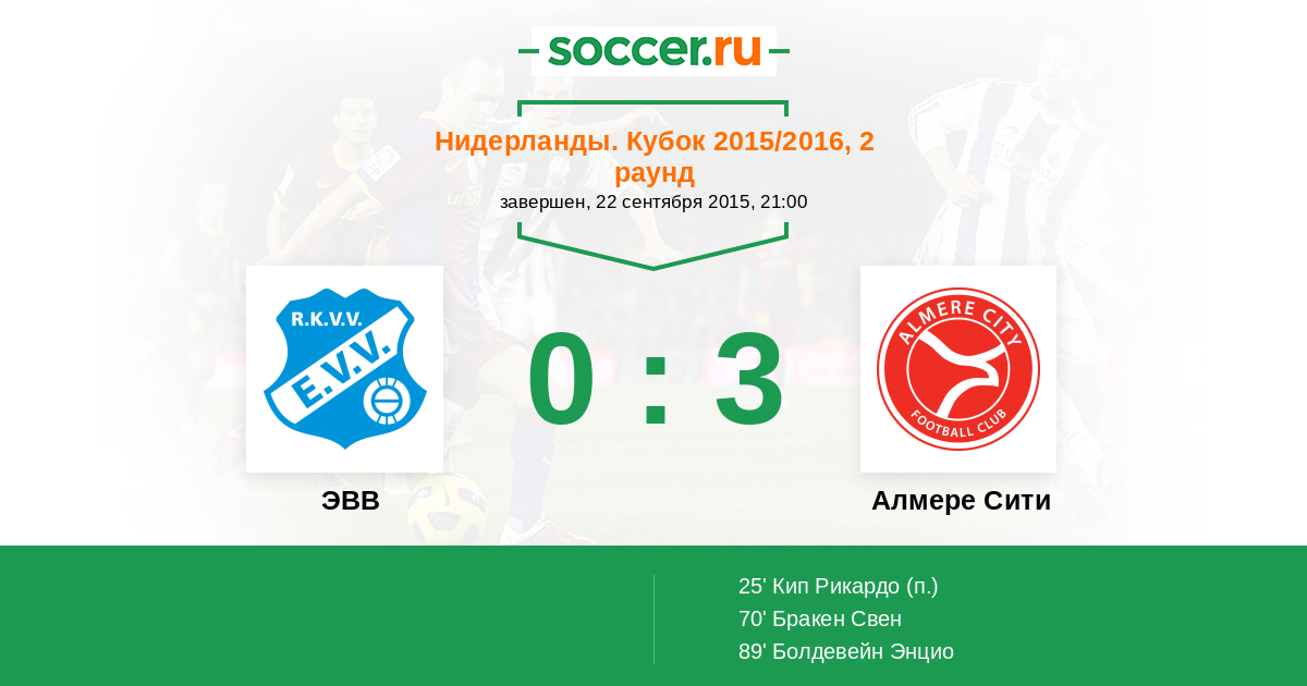Протокол матча ЭВВ против Алмере Сити