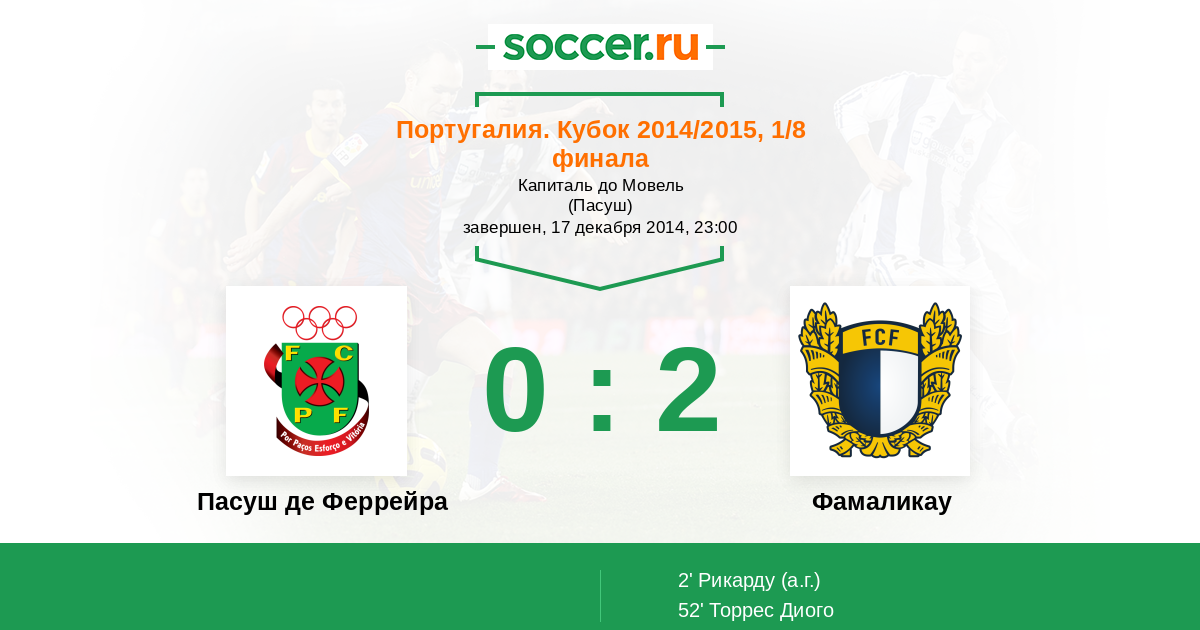 Протокол матча Пасуш де Феррейра против Фамаликау