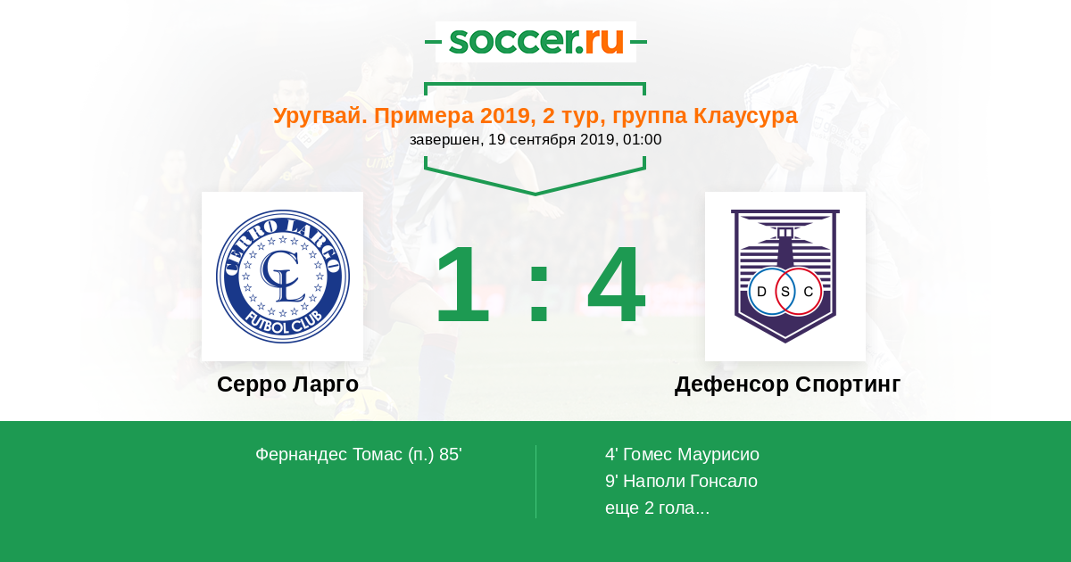 Протокол матча Серро Ларго против Дефенсор Спортинг