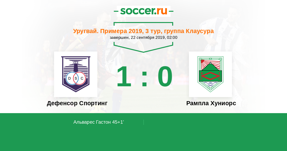 Протокол матча Дефенсор Спортинг против Рампла Хуниорс