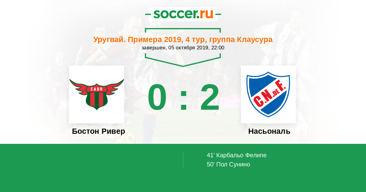 Протокол матча Бостон Ривер против Насьональ