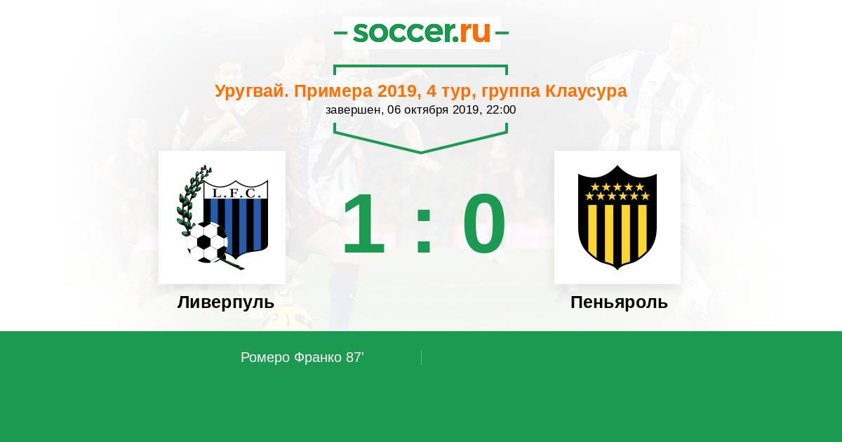 Протокол матча Ливерпуль против Пеньяроль