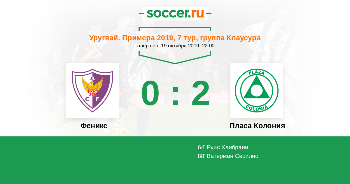 Протокол матча Феникс против Пласа Колония