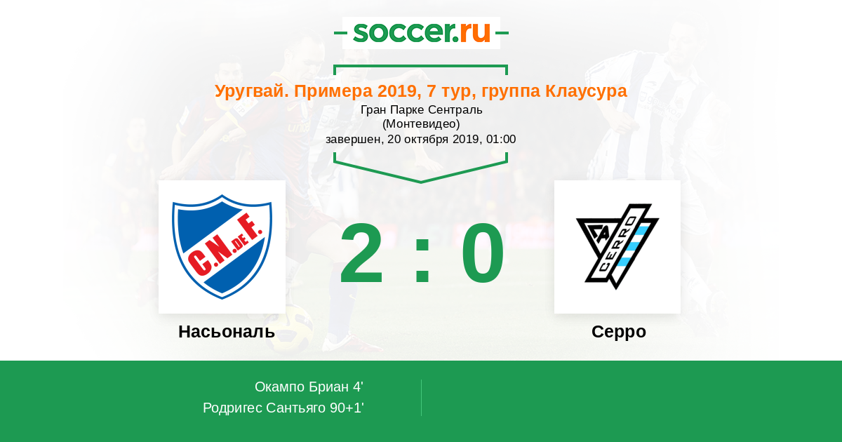 Протокол матча Насьональ против Серро