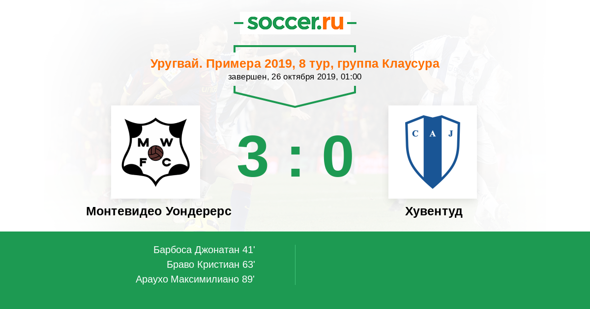 Протокол матча Монтевидео Уондерерс против Хувентуд