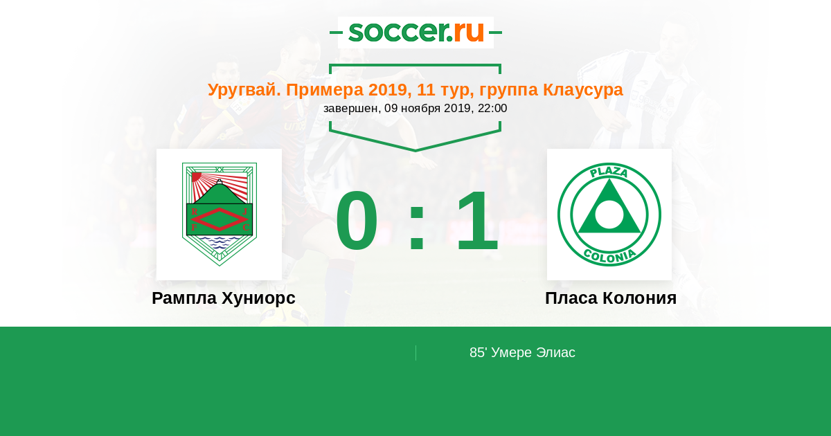 Протокол матча Рампла Хуниорс против Пласа Колония