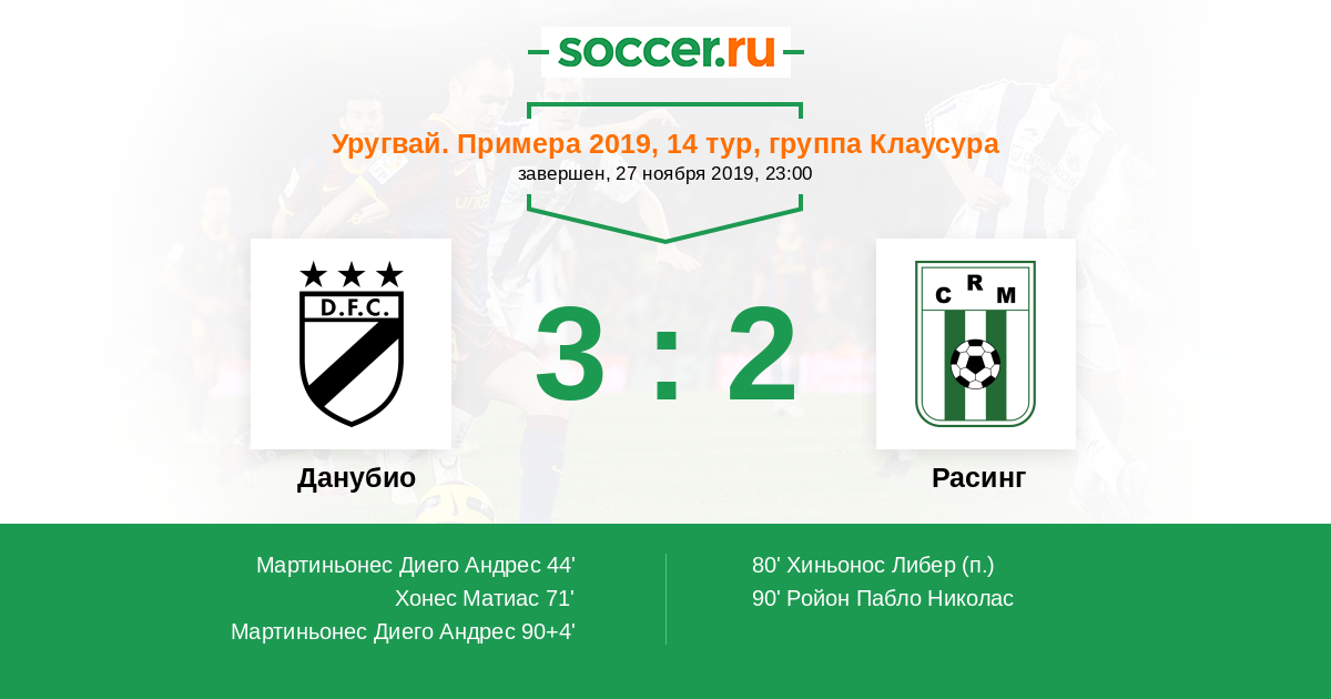 Протокол матча Данубио против Расинг