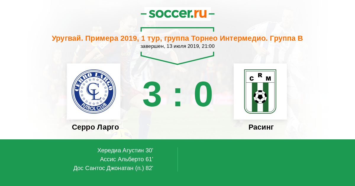 Протокол матча Серро Ларго против Расинг