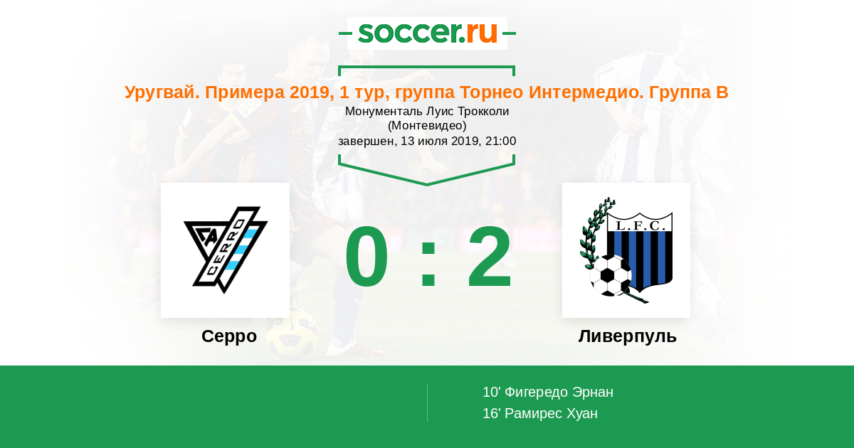 Протокол матча Серро против Ливерпуль