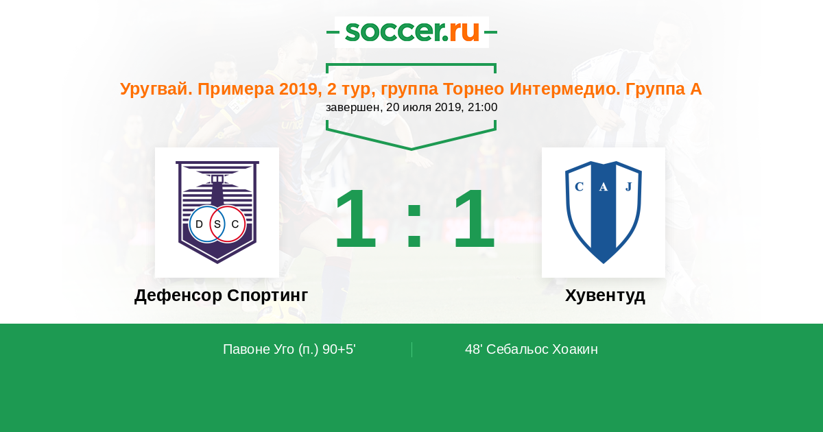 Протокол матча Дефенсор Спортинг против Хувентуд