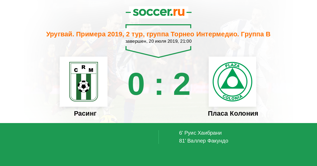 Протокол матча Расинг против Пласа Колония