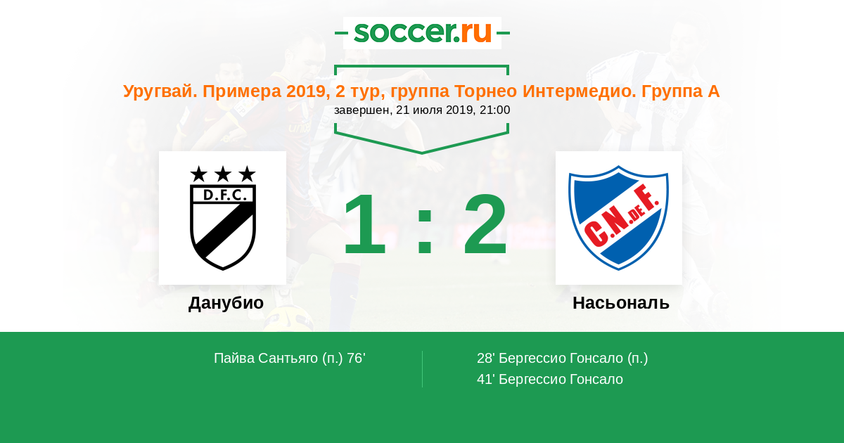 Протокол матча Данубио против Насьональ
