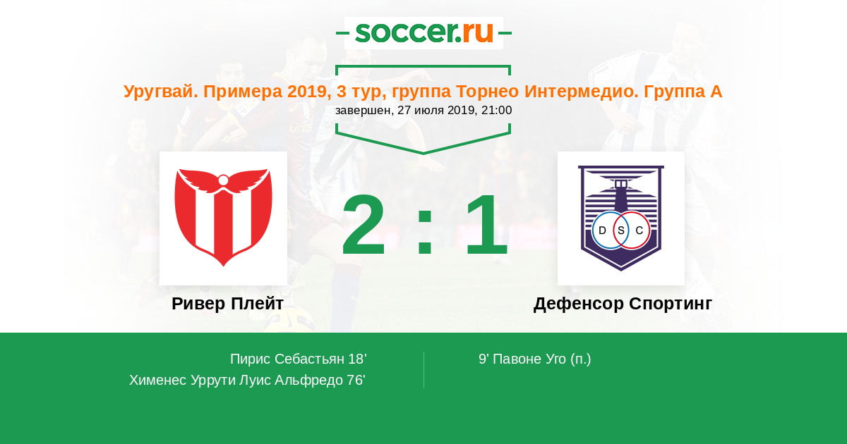 Протокол матча Ривер Плейт против Дефенсор Спортинг