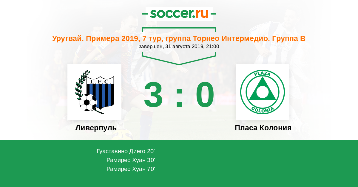 Протокол матча Ливерпуль против Пласа Колония