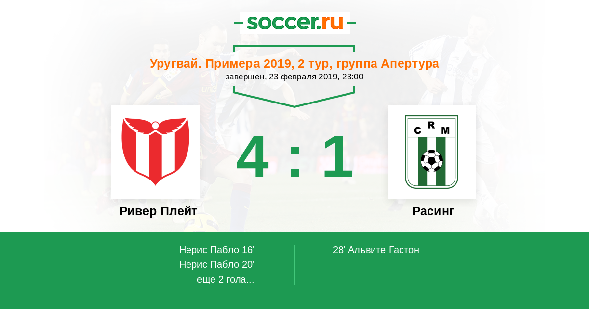 Протокол матча Ривер Плейт против Расинг