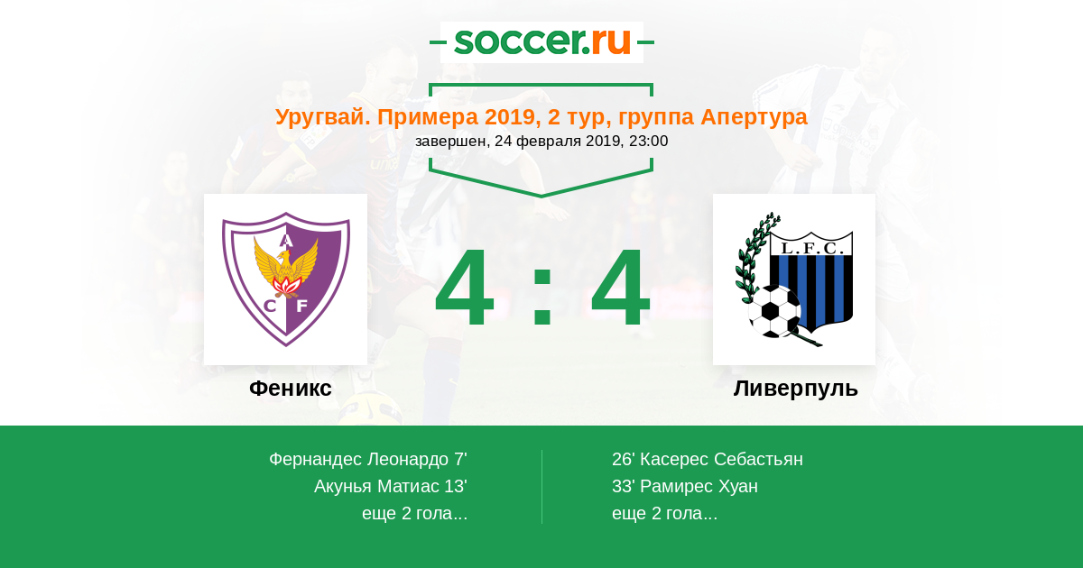 Протокол матча Феникс против Ливерпуль