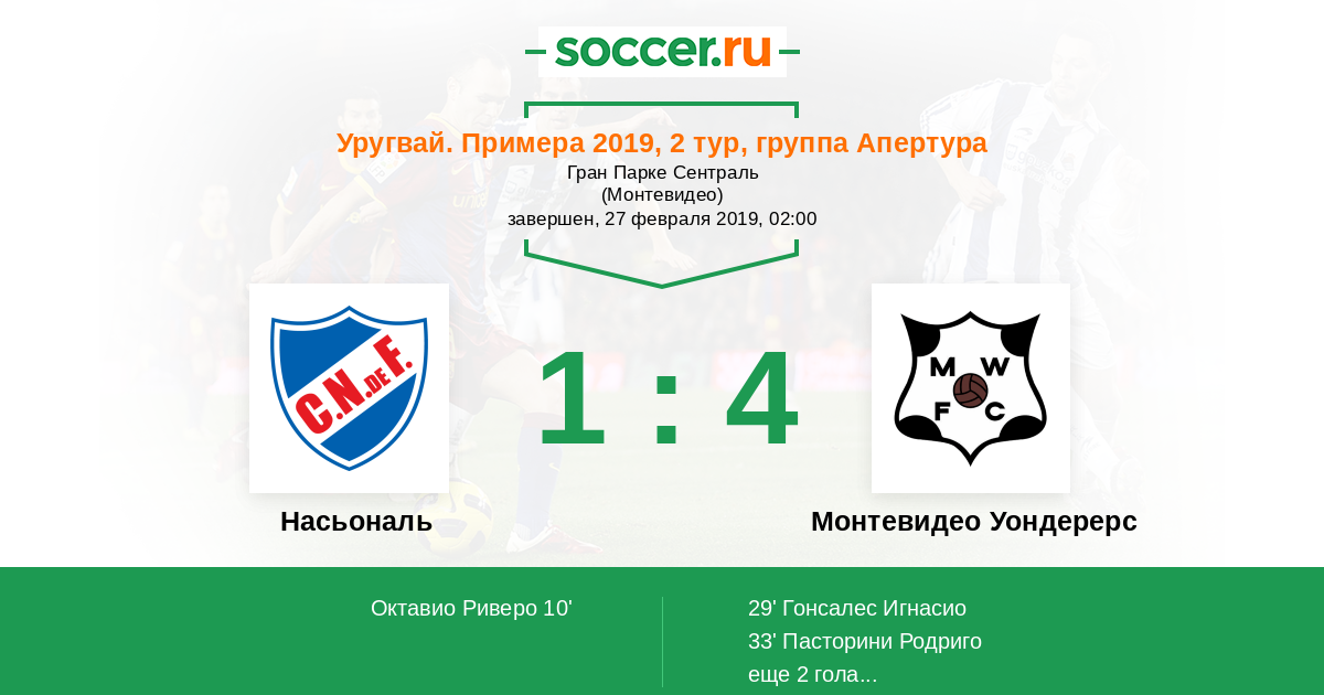 Протокол матча Насьональ против Монтевидео Уондерерс