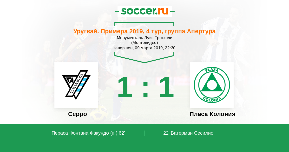 Протокол матча Серро против Пласа Колония