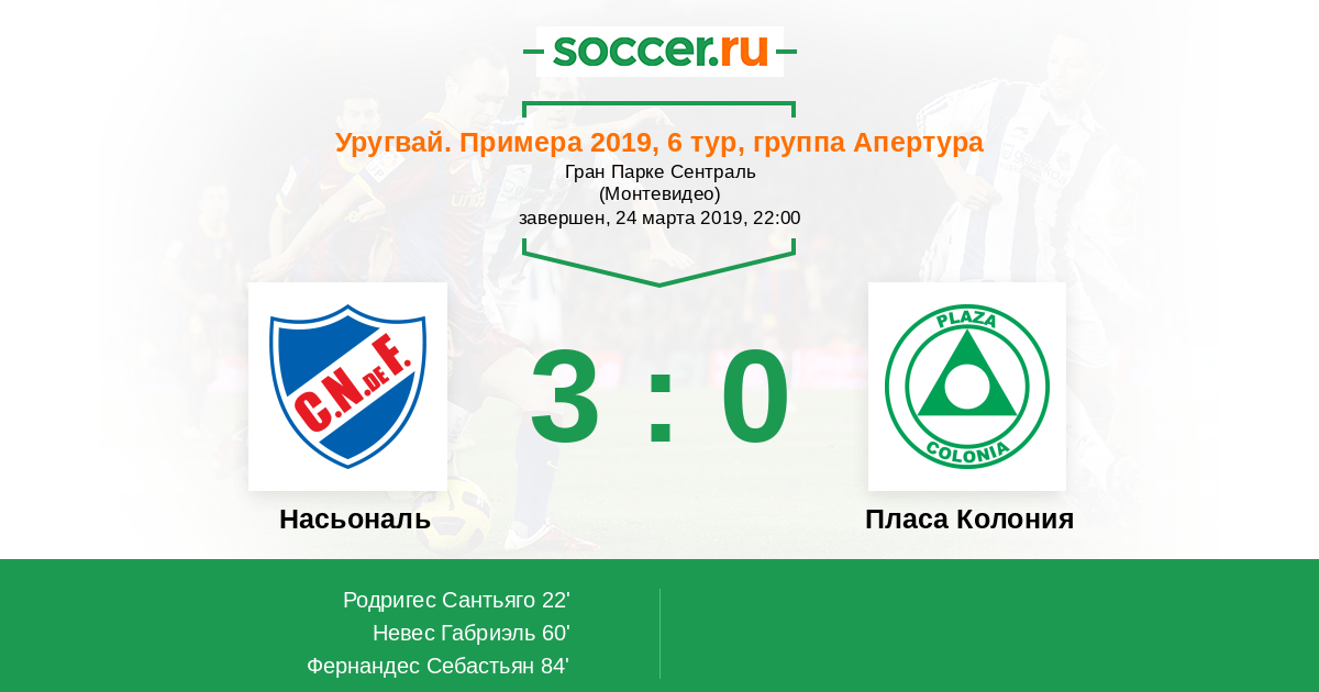 Протокол матча Насьональ против Пласа Колония
