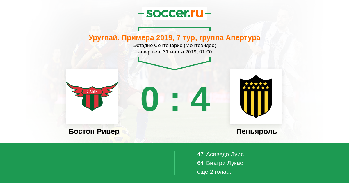 Протокол матча Бостон Ривер против Пеньяроль