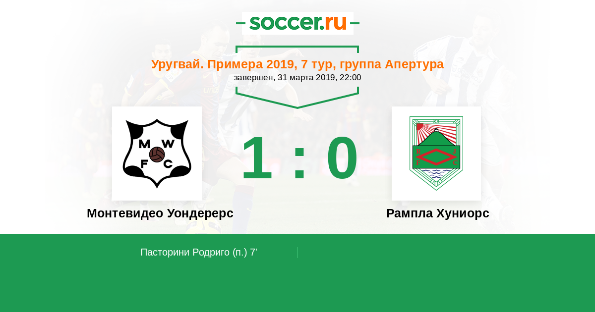 Протокол матча Монтевидео Уондерерс против Рампла Хуниорс