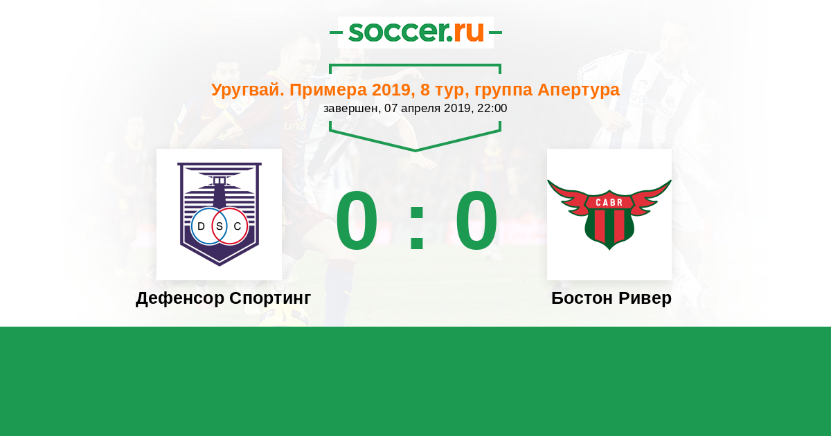 Протокол матча Дефенсор Спортинг против Бостон Ривер