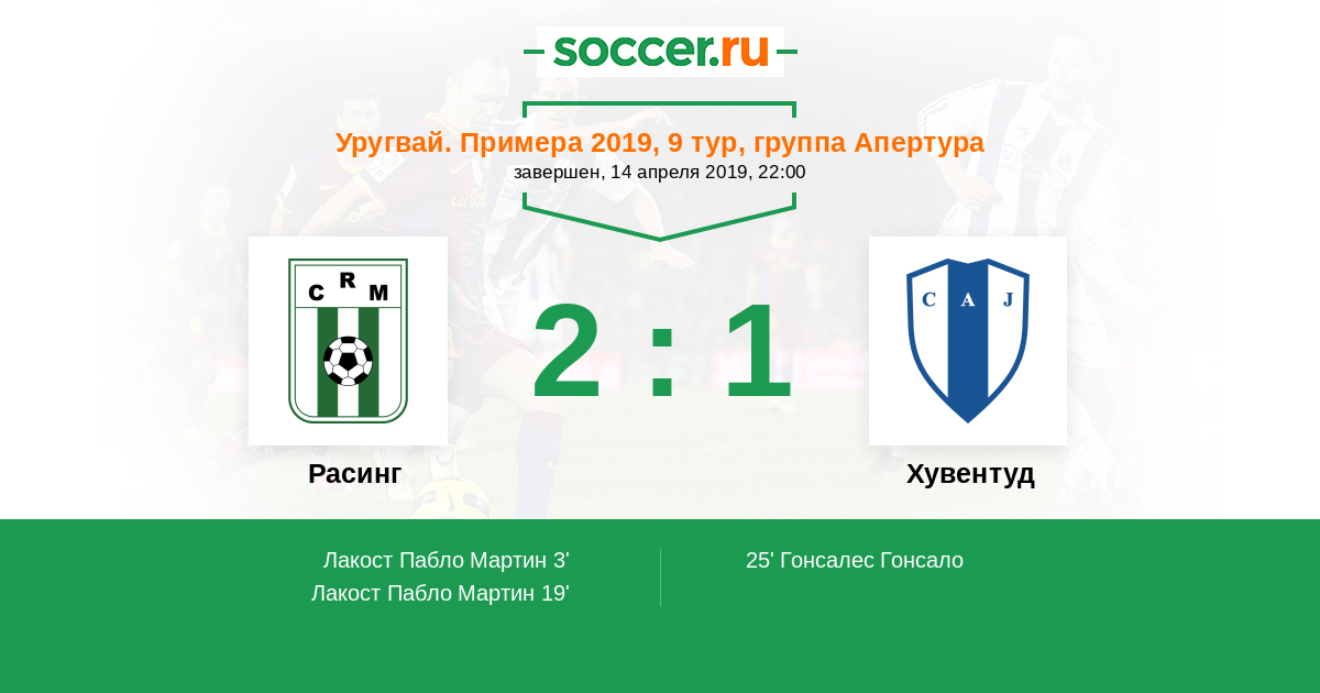 Протокол матча Расинг против Хувентуд