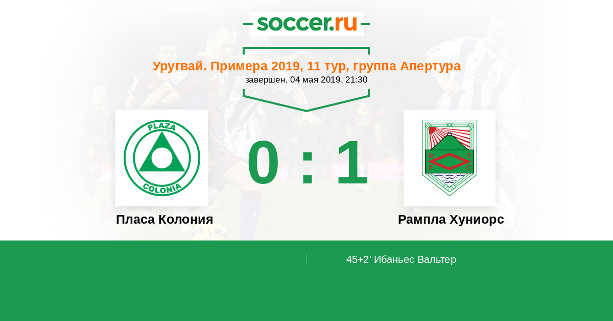 Протокол матча Пласа Колония против Рампла Хуниорс