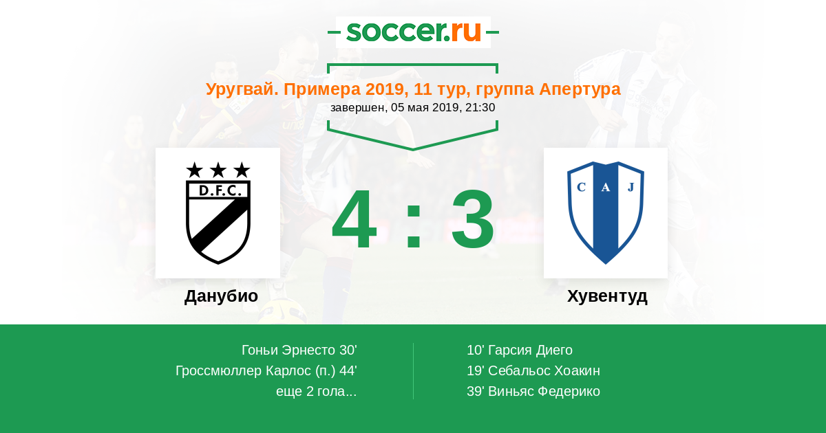 Протокол матча Данубио против Хувентуд