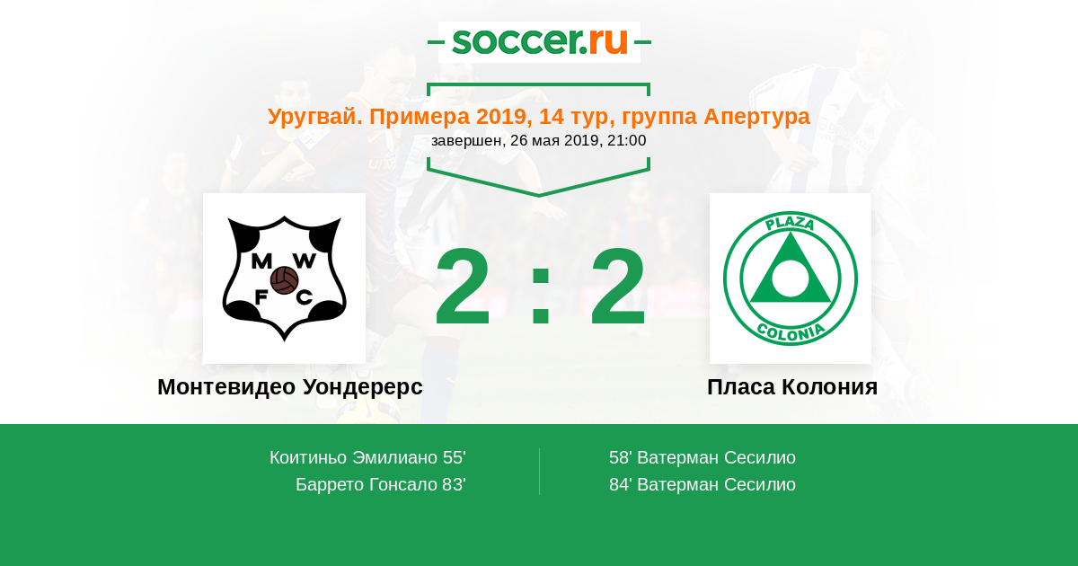 Протокол матча Монтевидео Уондерерс против Пласа Колония