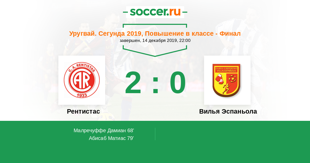 Протокол матча Рентистас против Вилья Эспаньола