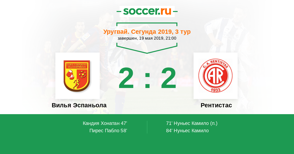 Протокол матча Вилья Эспаньола против Рентистас