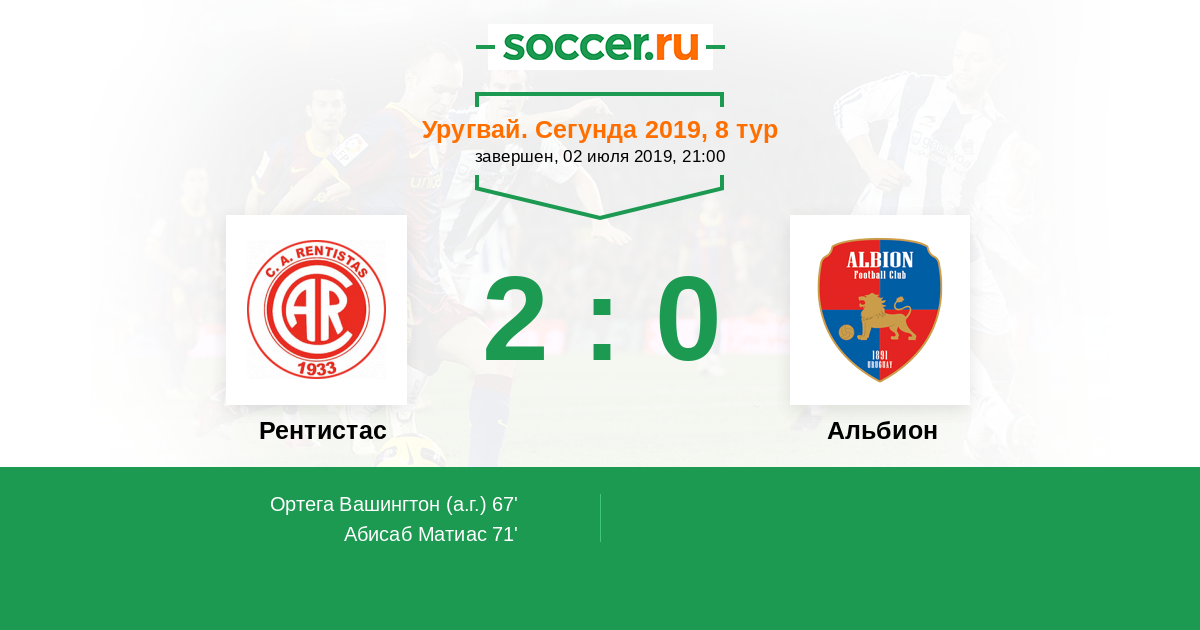 Протокол матча Рентистас против Альбион