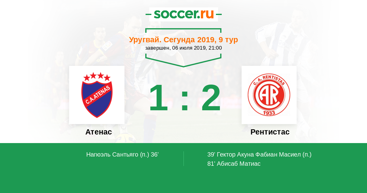 Протокол матча Атенас против Рентистас