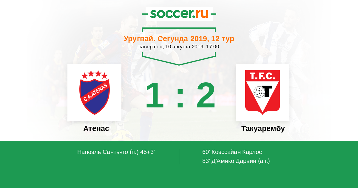 Протокол матча Атенас против Такуарембу