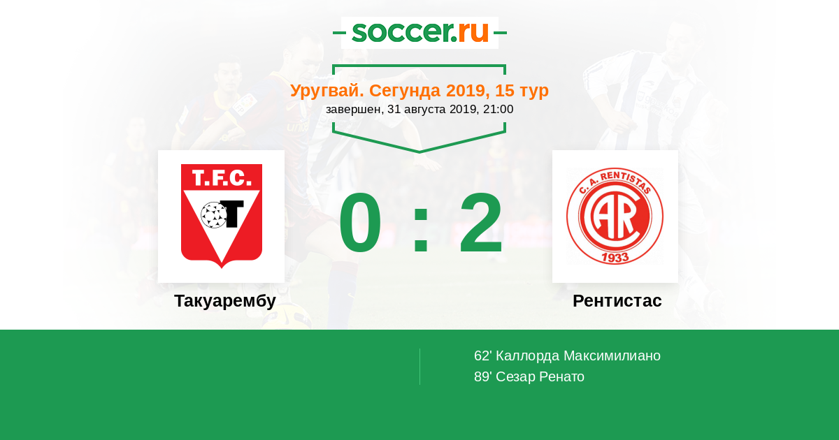 Протокол матча Такуарембу против Рентистас