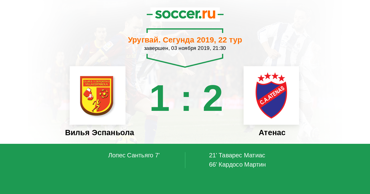 Протокол матча Вилья Эспаньола против Атенас