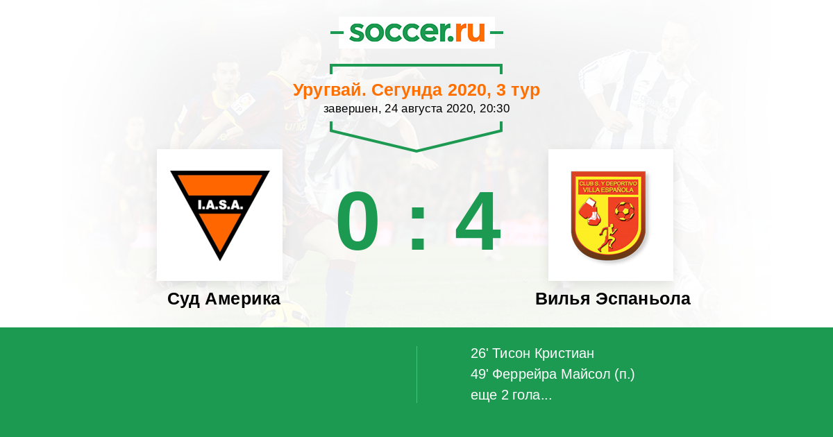 Протокол матча Суд Америка против Вилья Эспаньола