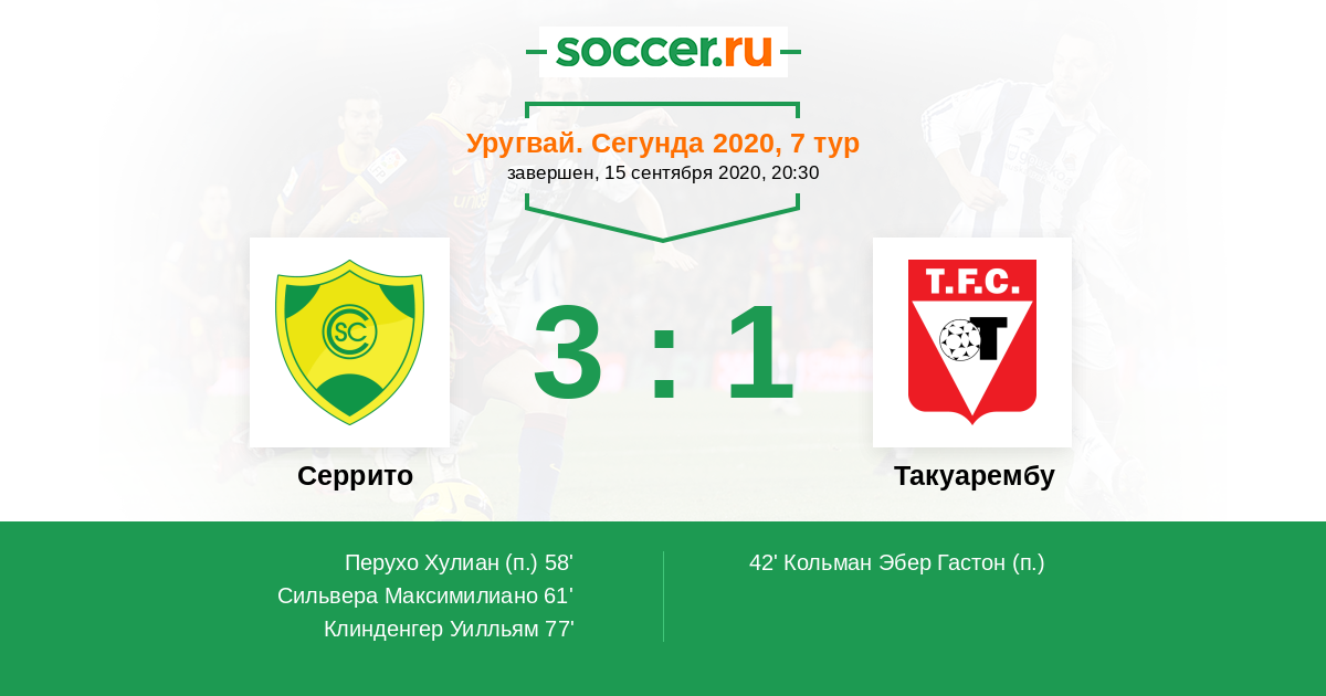 Протокол матча Серрито против Такуарембу