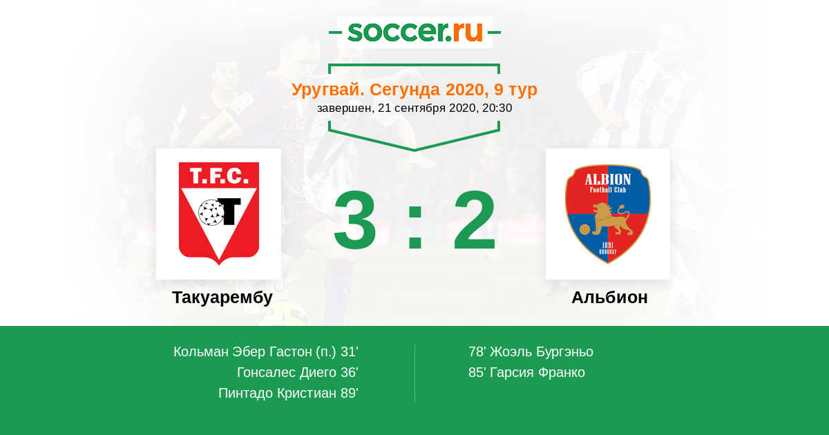 Протокол матча Такуарембу против Альбион