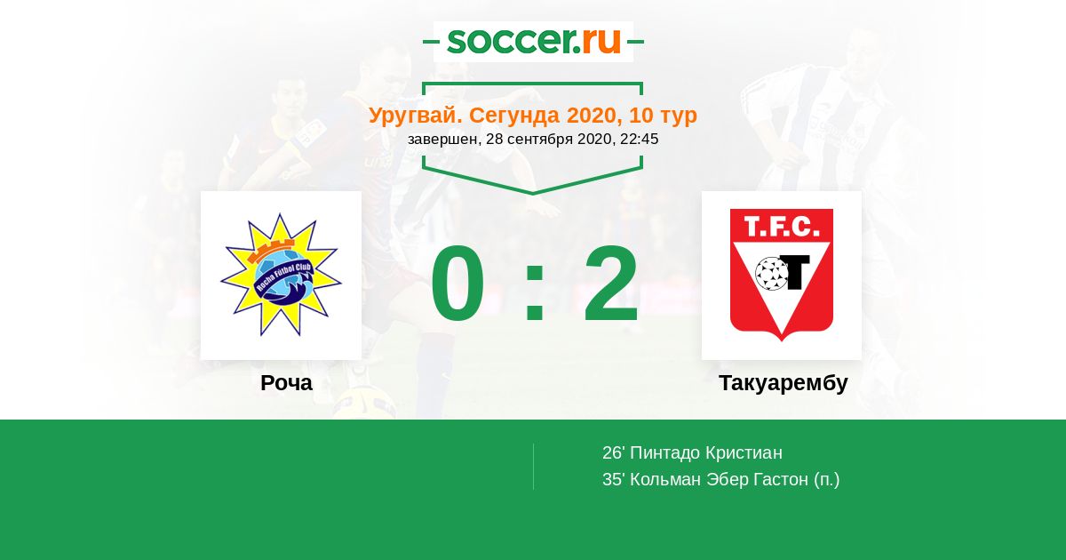Протокол матча Роча против Такуарембу