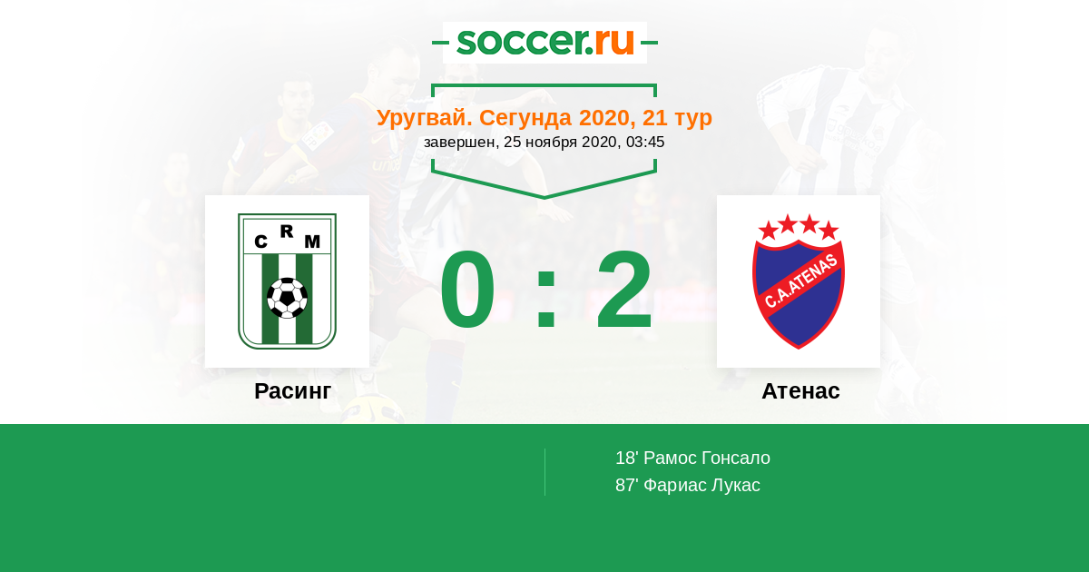 Протокол матча Расинг против Атенас
