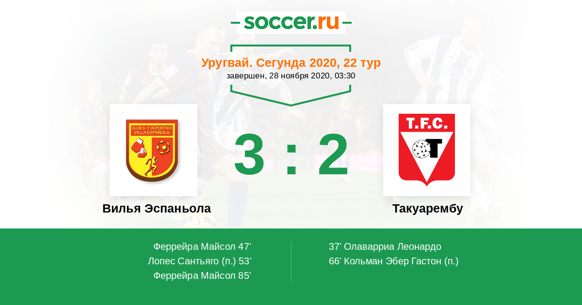 Протокол матча Вилья Эспаньола против Такуарембу