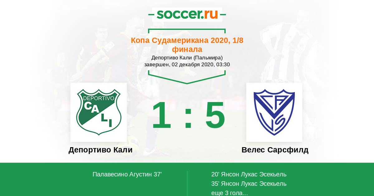 Протокол матча Депортиво Кали против Велес Сарсфилд