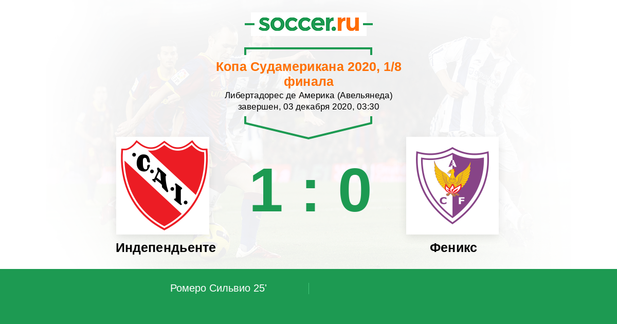 25' (1:0) Ромеро Сильвио (18) (Мартинес Федерико (27))